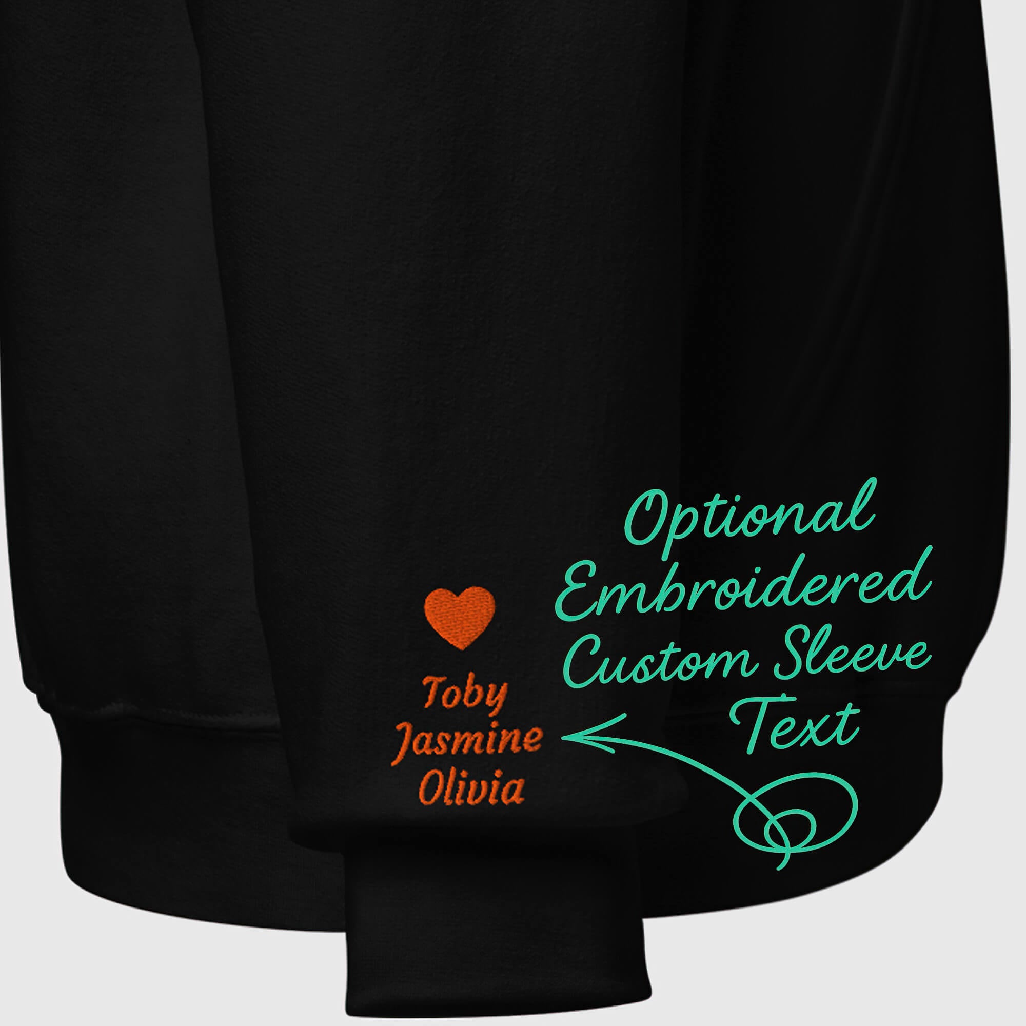 • Optional sleeve embroidery with names, initials or other text (same thread color)